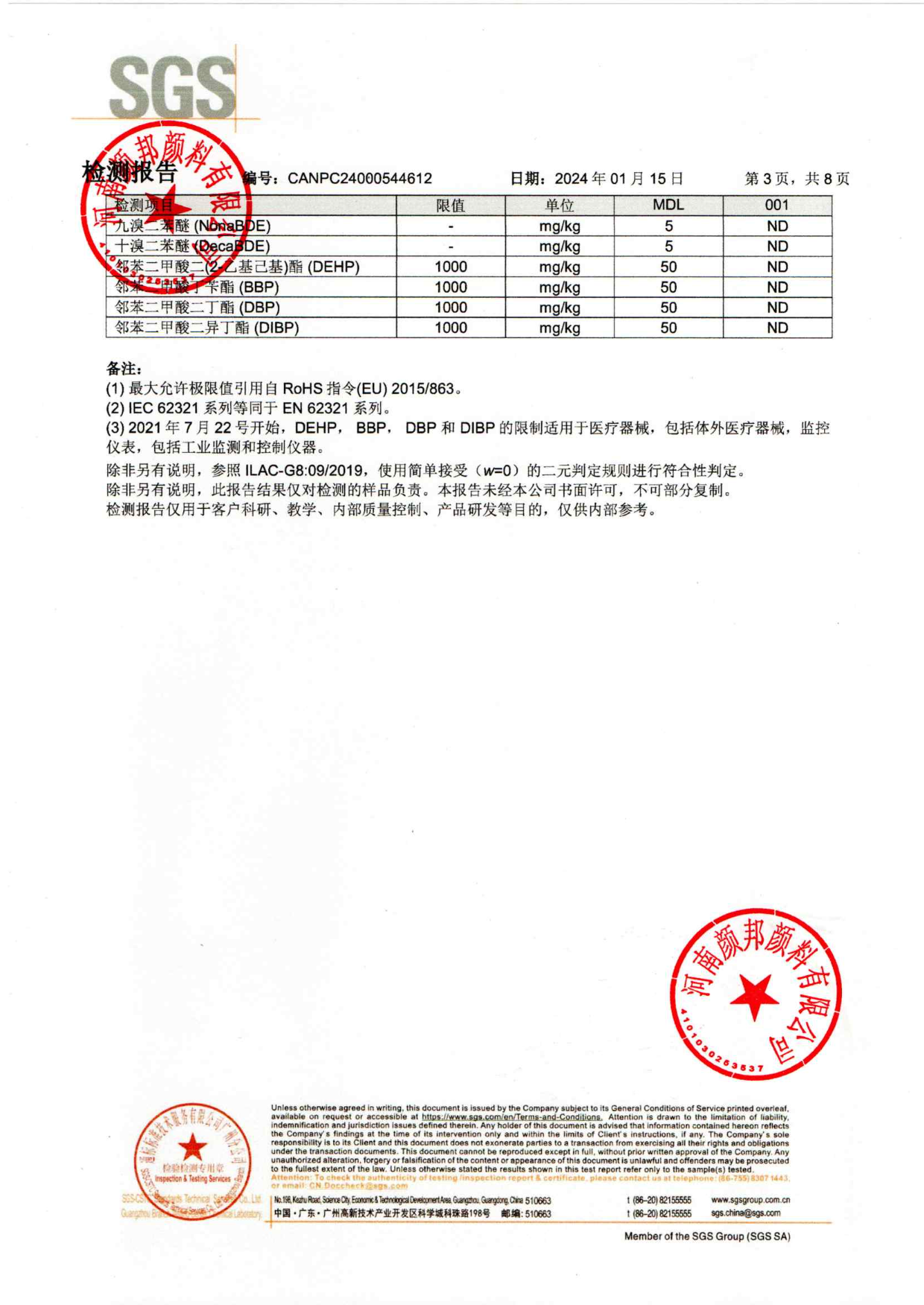 顏邦顏料環(huán)保檢測報告(8)